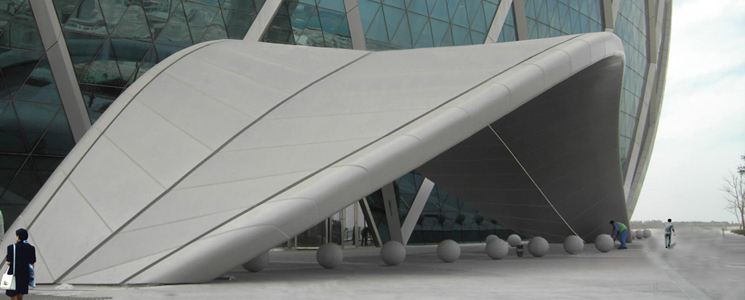鋁合金單板一般是2~4mm的鋁合金板,在制作成墻板時,先按二次設計的要求進行鈑金加工,直接折邊,四角經高壓焊接成密合的槽狀,墻板背面用電焊植釘的方式預留加強筋的固定螺栓。鈑金工作完成之后,再進行氟碳漆的噴涂,一般有二涂三涂,漆膜厚度為3 0~40μm。鋁合金單板容易加工成弧形及多折邊或銳角,能夠適應如今變化無窮的外墻裝飾的需要,而且色彩豐富,可以按設計及業主的要求任意選色,意義上拓寬了建筑師們的設計空間。