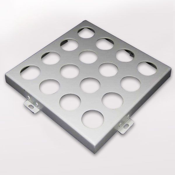 與常規鋁單板相比,沖孔鋁單板的特征就是表面形狀各異的沖孔(包括圓孔、方孔、五角星、六邊形孔等),裝飾效果突出,也能夠在一定程度上起到降低噪音的作用。集裝飾性與實用性于一體,沖孔鋁單板在工程裝飾中使用的越來越多。